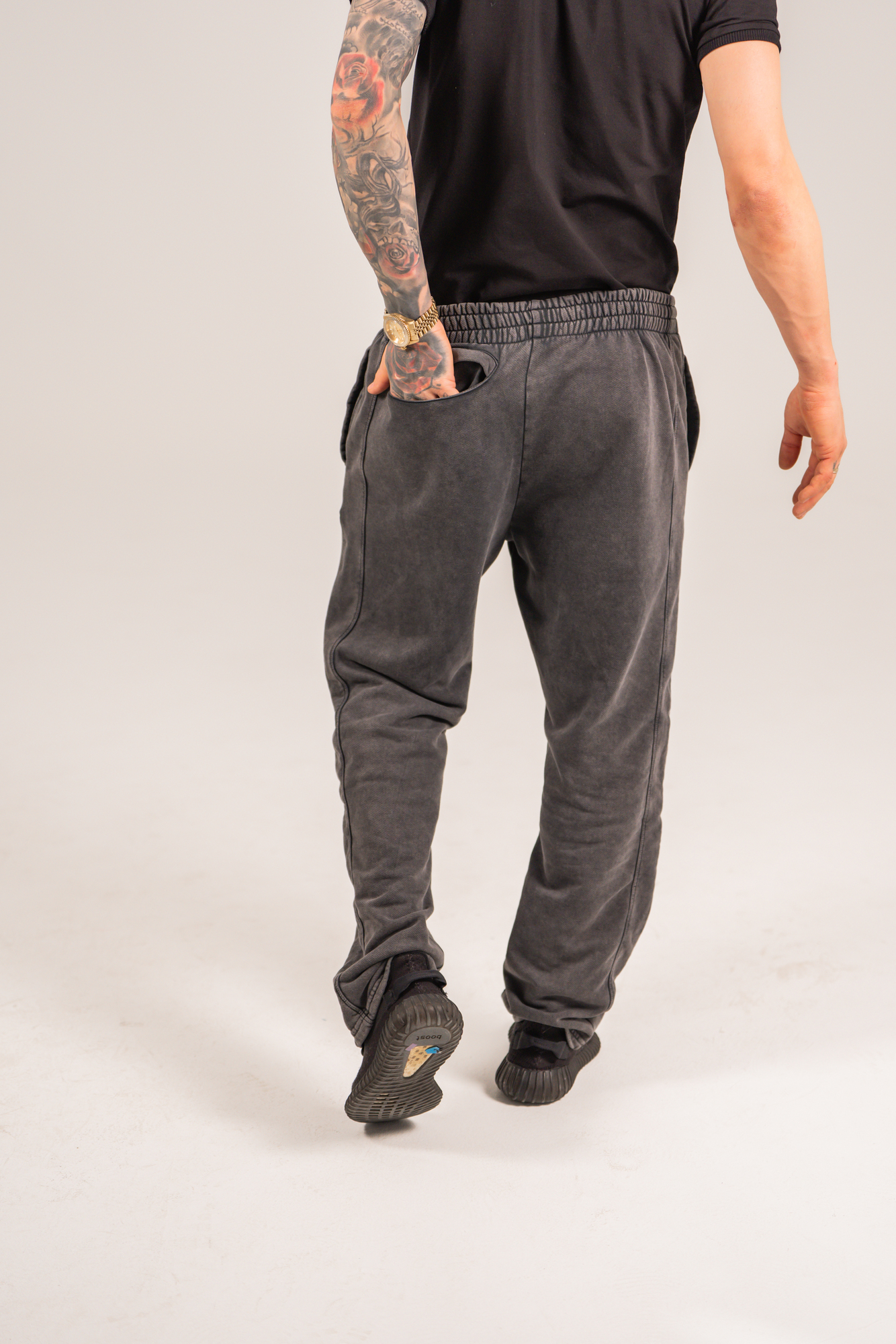 ściągacze przy nogawkach, które nadają spodniom charakterystyczny baggy look